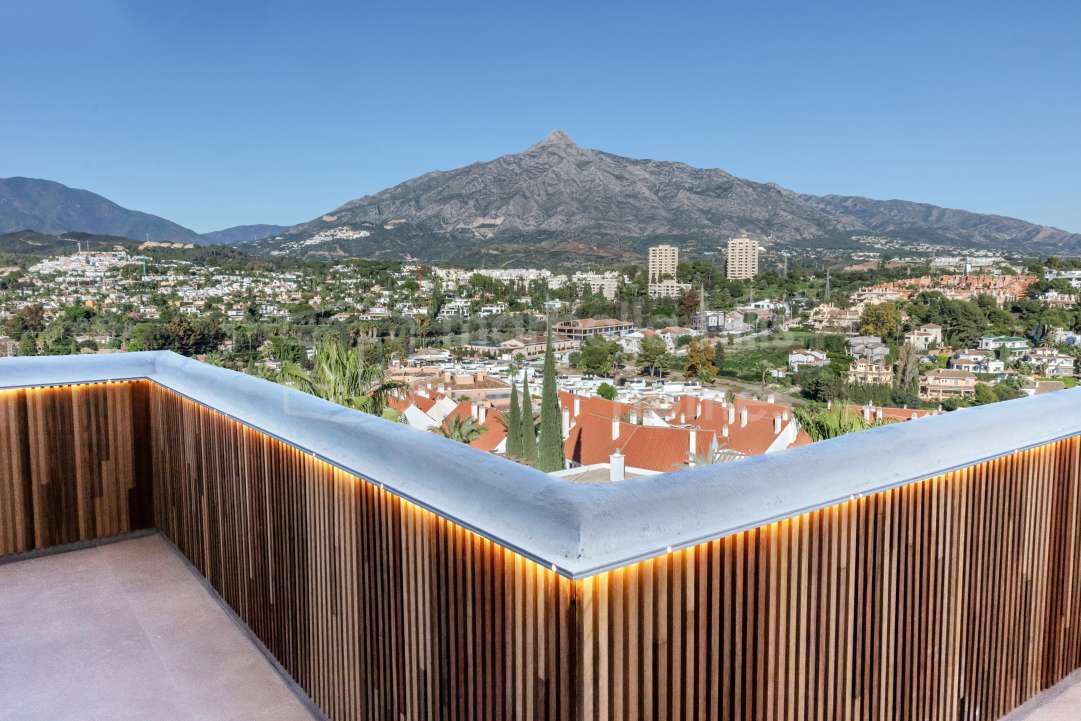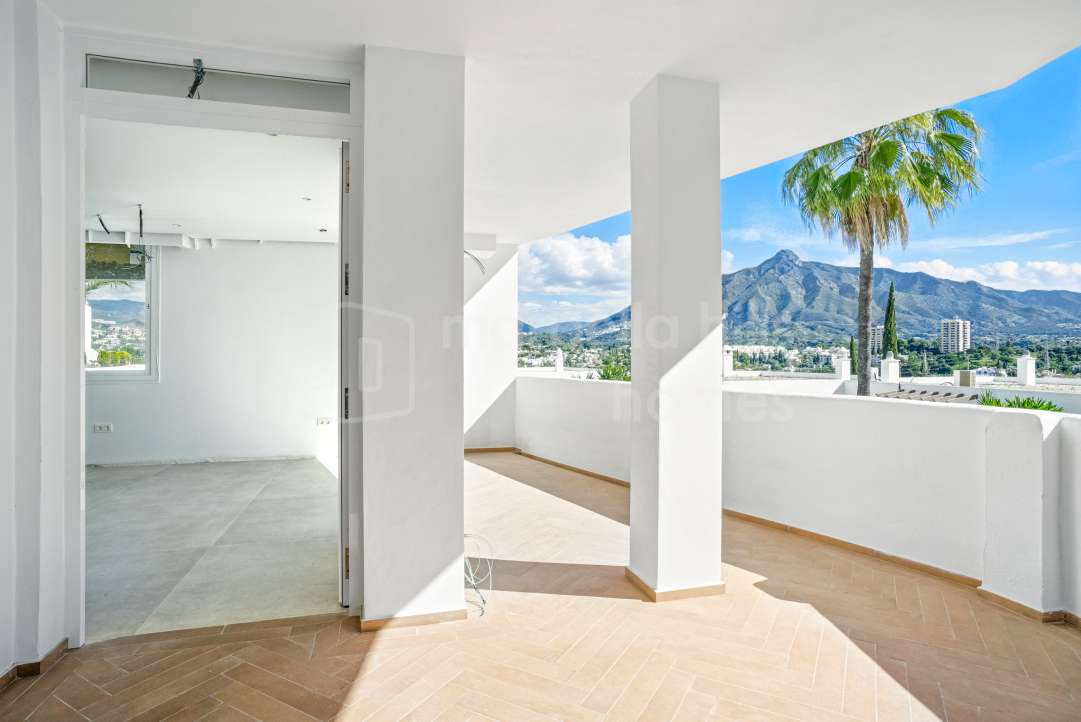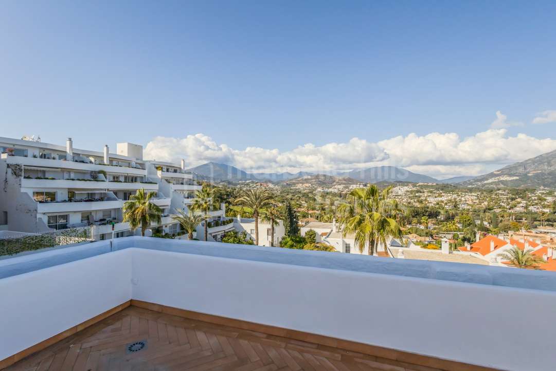 Superbe penthouse de 2 chambres rénové à Jardines de Andalucía avec terrasse privée, vues sur la mer et La Concha, parking et emplacement idéal proche du golf, des plages et des...