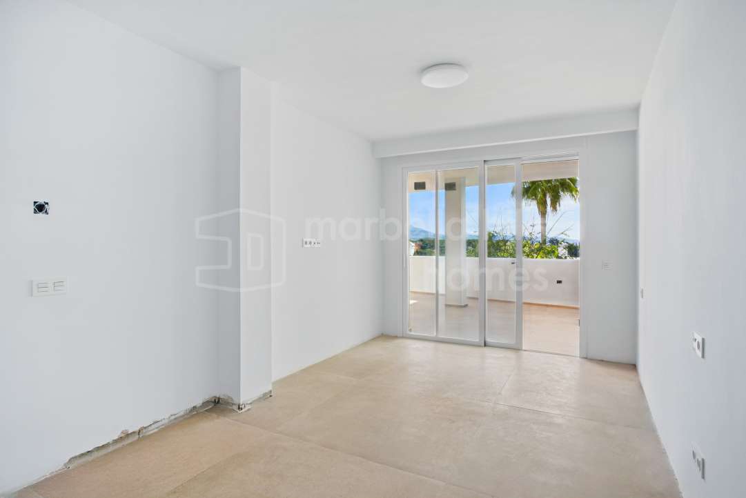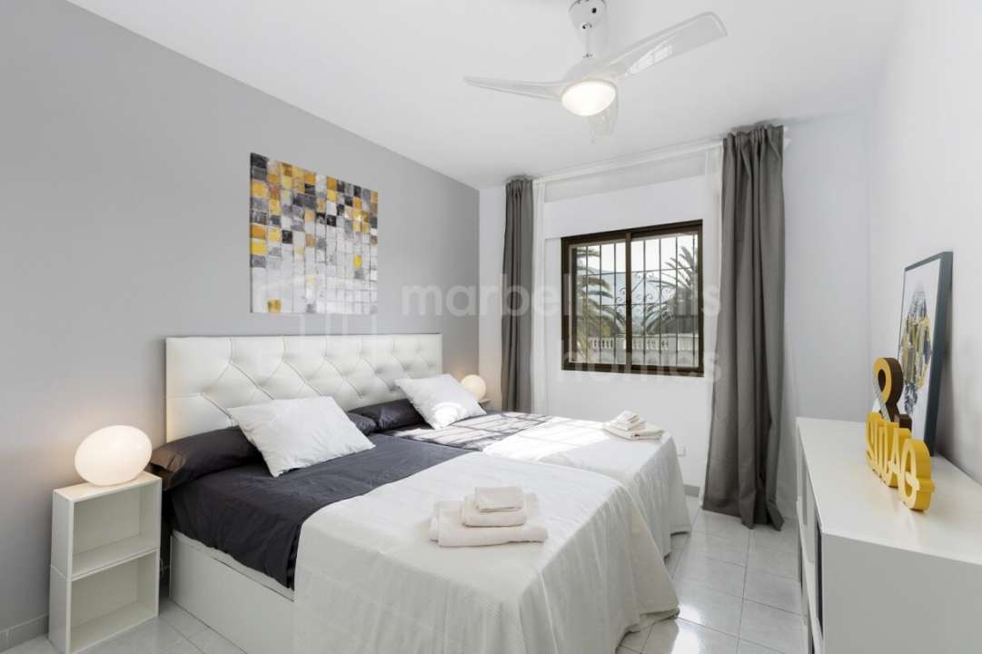 Appartement rénové de 2 chambres à Jardines de Andalucía. Terrasse privée, vue sur La Concha, parking et emplacement privilégié proche du golf, des plages et des services.