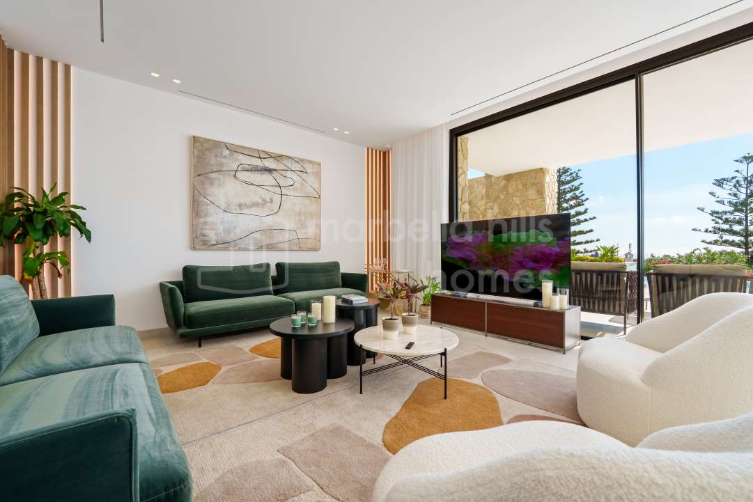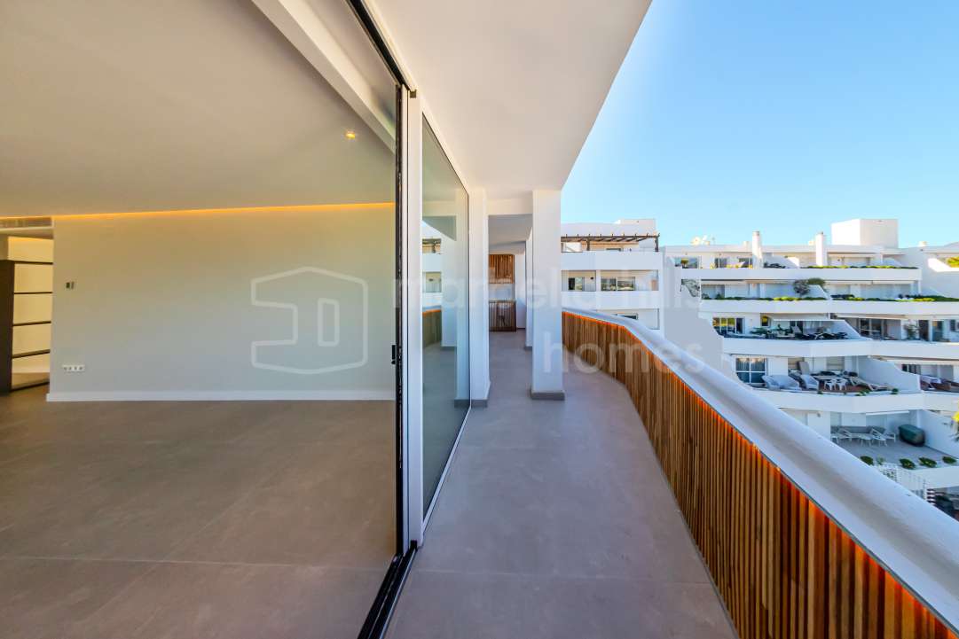 Appartement de 2 chambres entièrement rénové à Jardines de Andalucía avec terrasse de 63 m², vues mer et montagne, parking et emplacement idéal proche du golf, de la plage et...