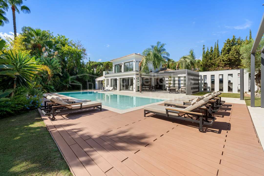 Villa moderne à vendre à Las Brisas, Nueva Andalucía – rénovée, avec piscine, terrasses et vues montagne, près du golf et de Puerto Banús.