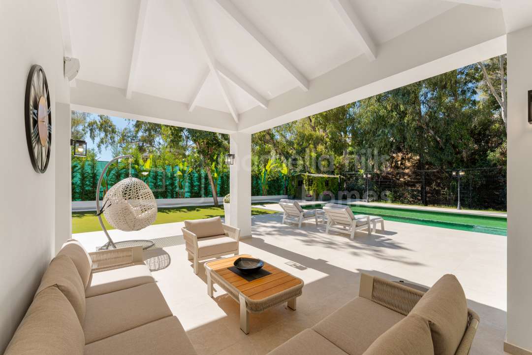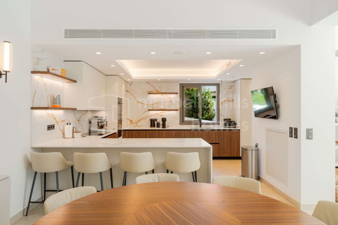 Résidence contemporaine à vendre à La Cerquilla, Nueva Andalucía – rénovée, privée, avec piscine, terrasses et vues sur la vallée du golf.