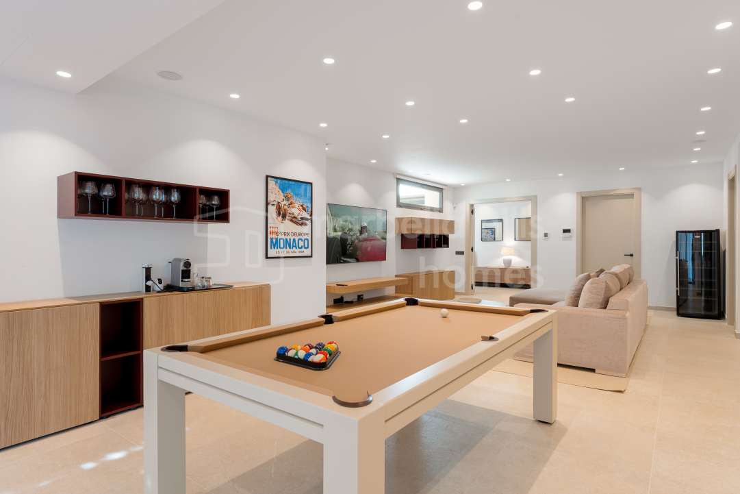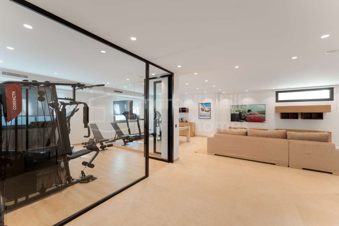 Villa moderne à vendre à Altos de Salamanca, Golden Mile – rénovée, 5 chambres, salle de sport, cinéma, solarium et vues mer.