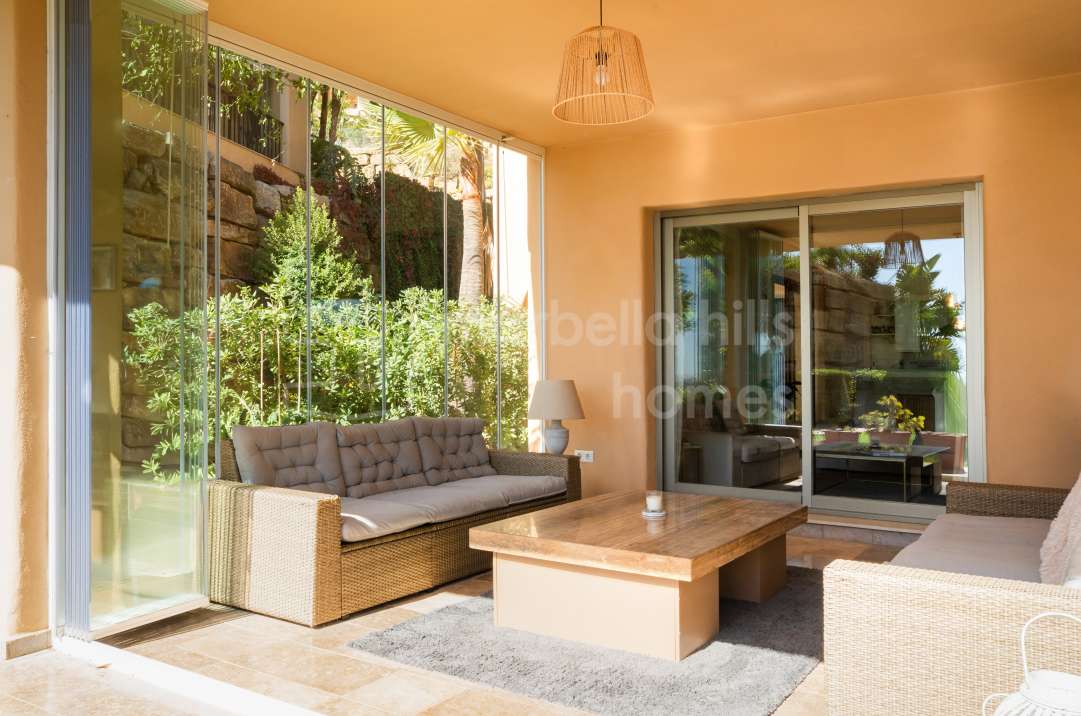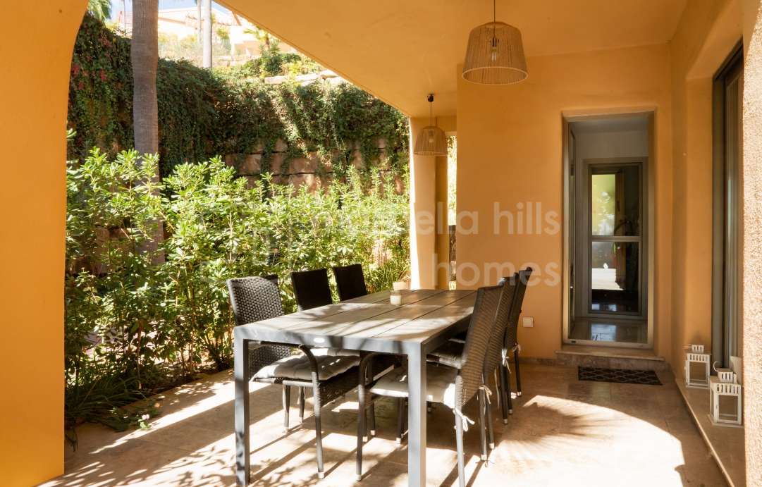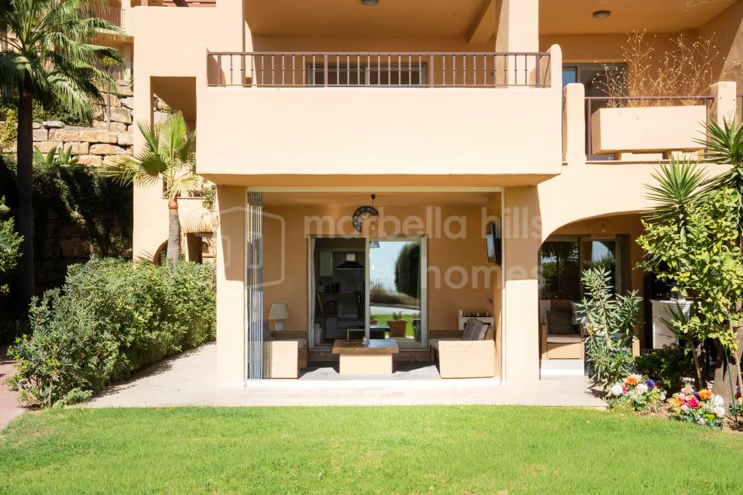 Appartement lumineux à vendre à Hacienda del Señorío de Cifuentes, Benahavís – terrasse, jardin privé, piscines et sécurité 24h.