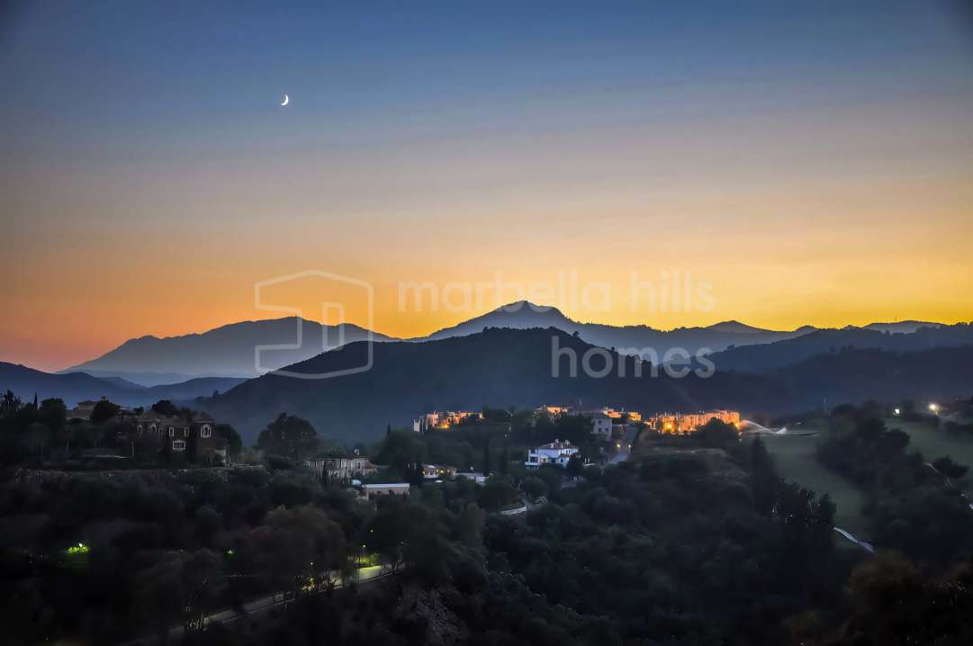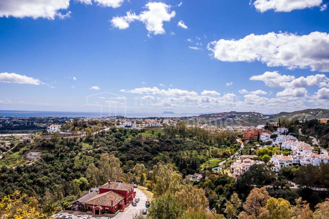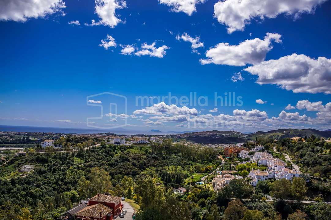 Penthouse entièrement rénové de trois chambres à La Quinta, Benahavís, offrant vues panoramiques sur la mer, le golf et la montagne, toit-terrasse privé et design moderne.