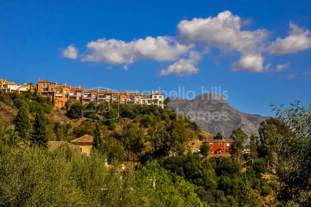 Penthouse à vendre à Paraiso Pueblo, Benahavís, avec vue panoramique sur la mer, solarium privé, grandes terrasses, prestations de type resort, garage et débarras.