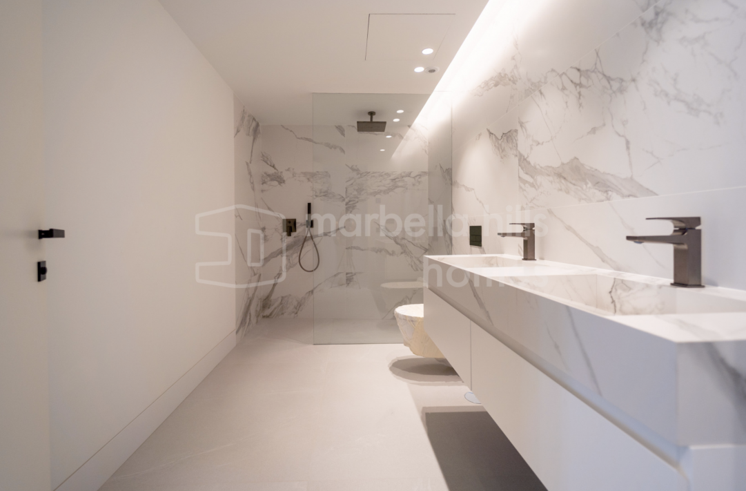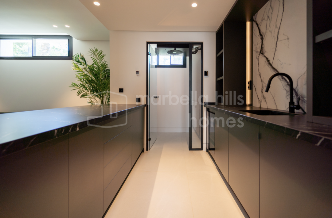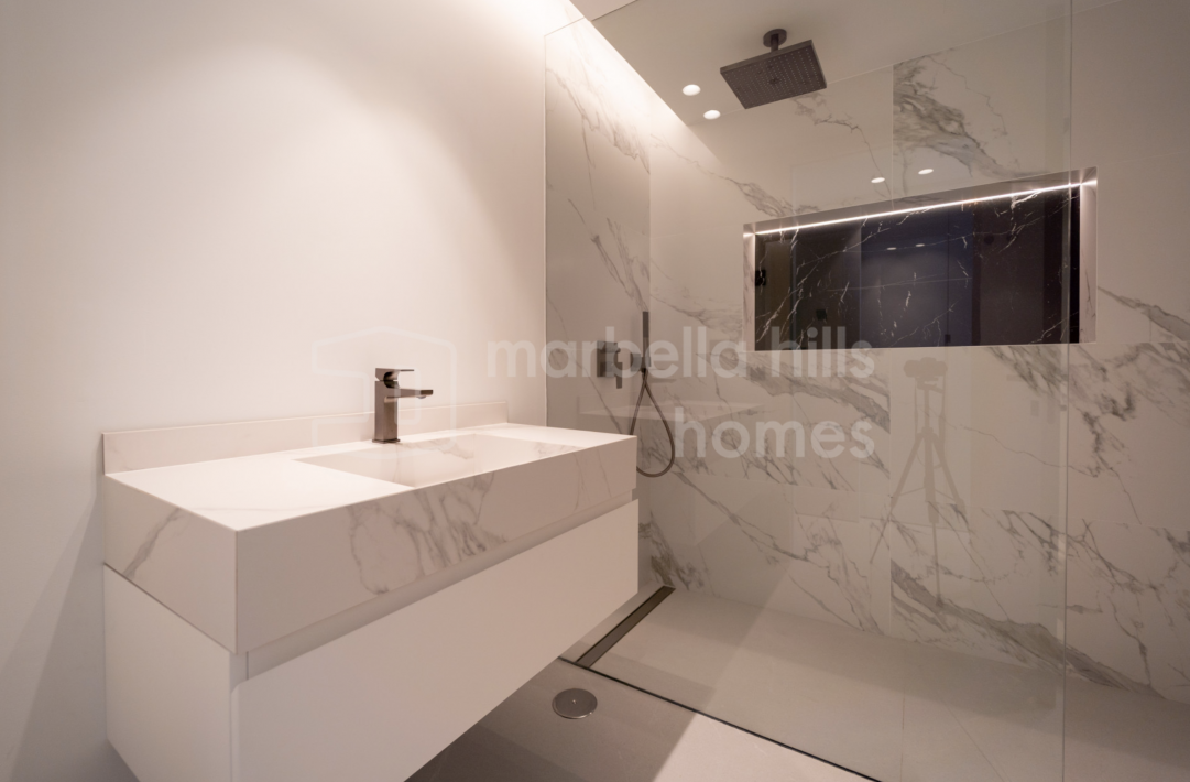 Superbe villa rénovée de 5 chambres à Nueva Andalucía, avec spa intérieur, piscine, sauna, hammam, gym extérieur, jardin spacieux, vues mer & montagne, domotique Lutron et...
