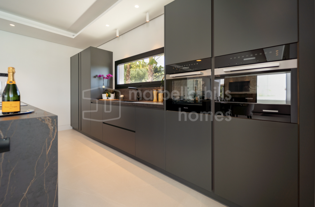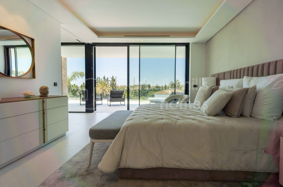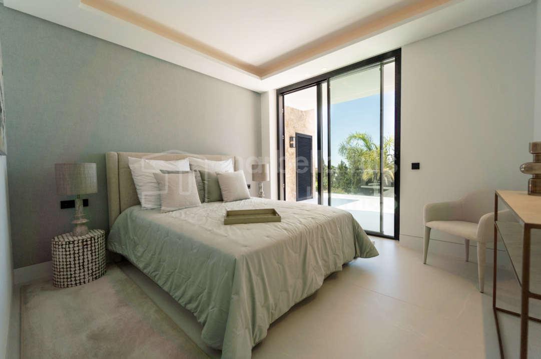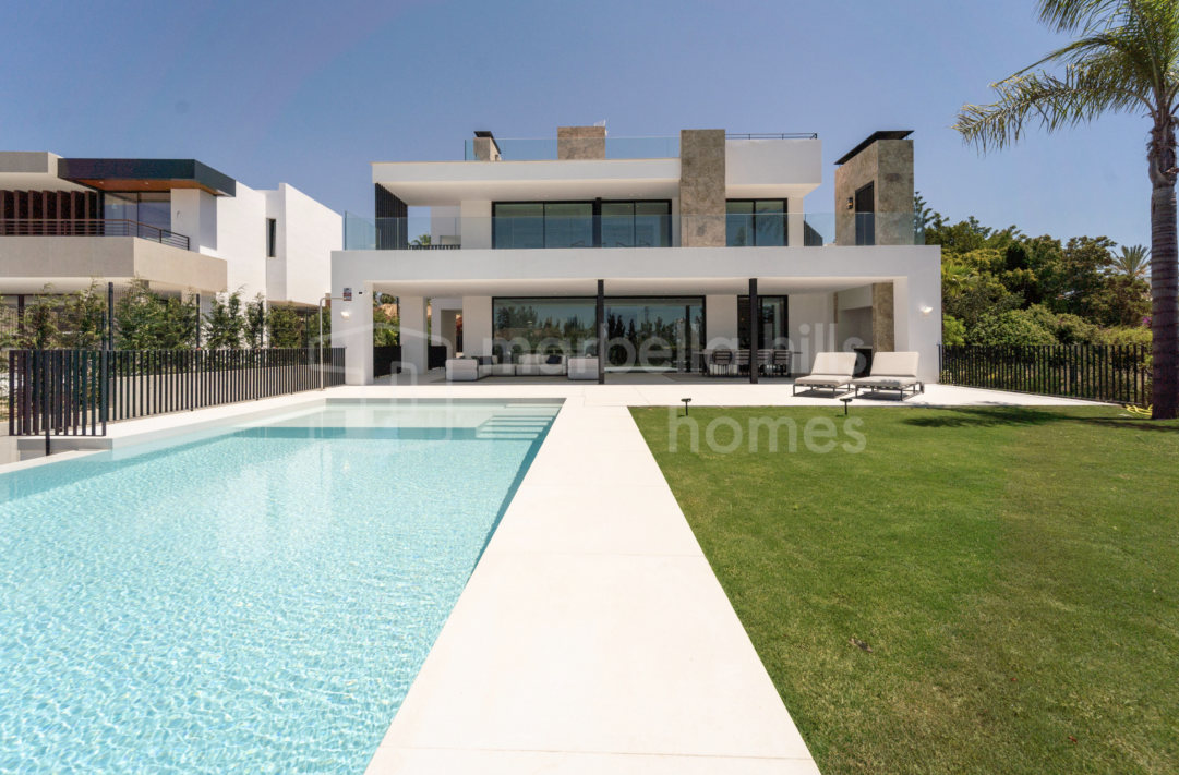 Villa contemporaine de luxe à Nueva Andalucía avec 5 chambres, spa, cinéma, salle de sport, piscine privée, jardins tropicaux et vastes espaces intérieurs et extérieurs....