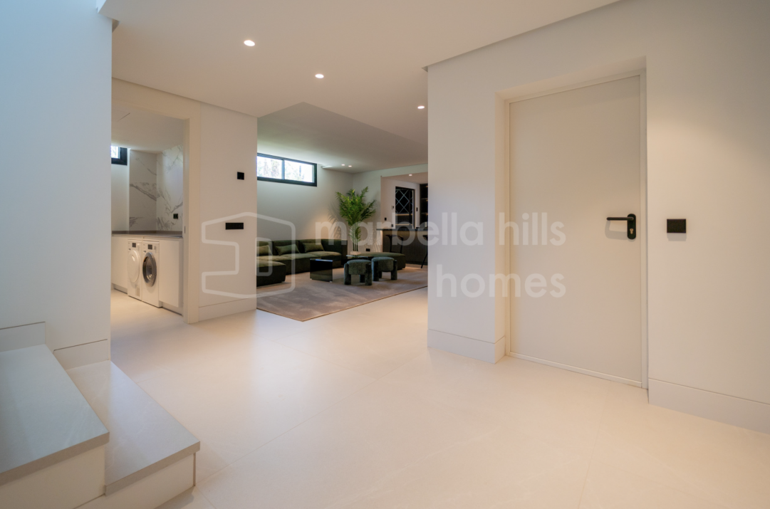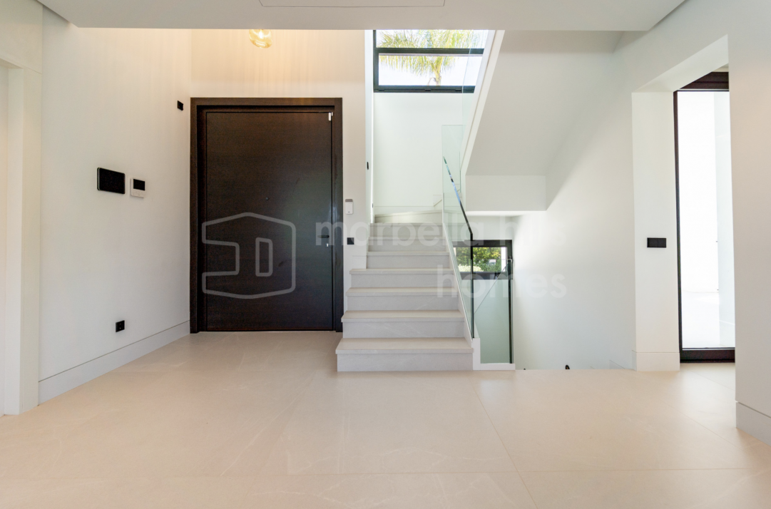 Villa neuve de cinq chambres à Los Naranjos Golf, Marbella. Design contemporain, espaces ouverts, piscine privée, niveau de loisirs en sous-sol et ascenseur.