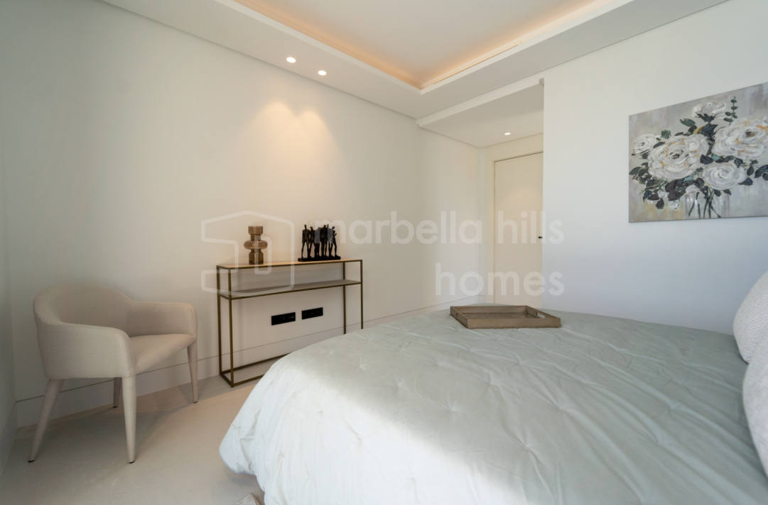 Résidence contemporaine à vendre à La Cerquilla, Nueva Andalucía – rénovée, privée, avec piscine, terrasses et vues sur la vallée du golf.