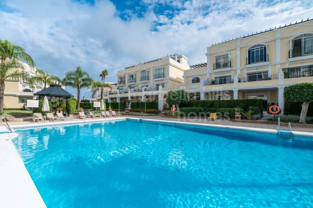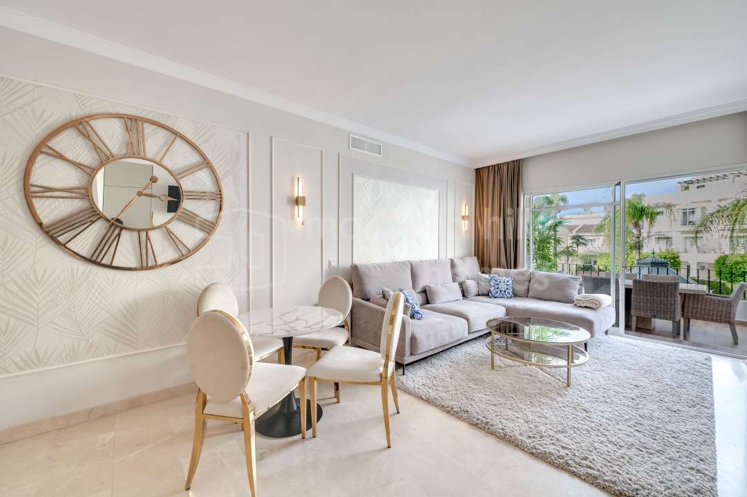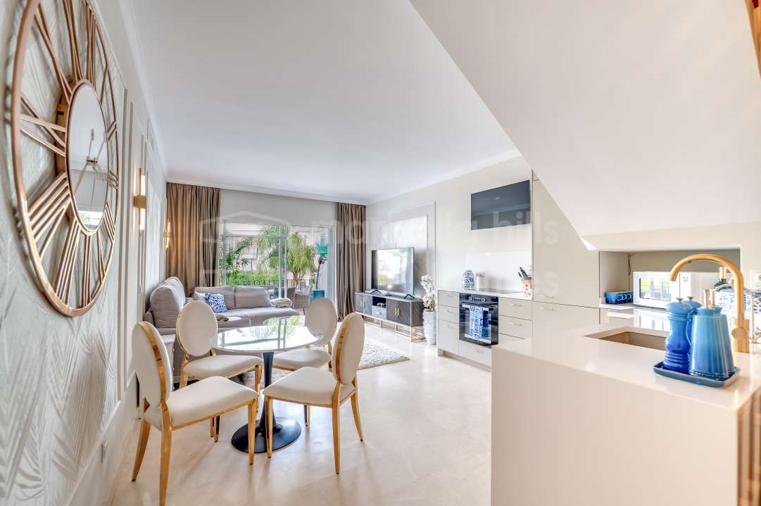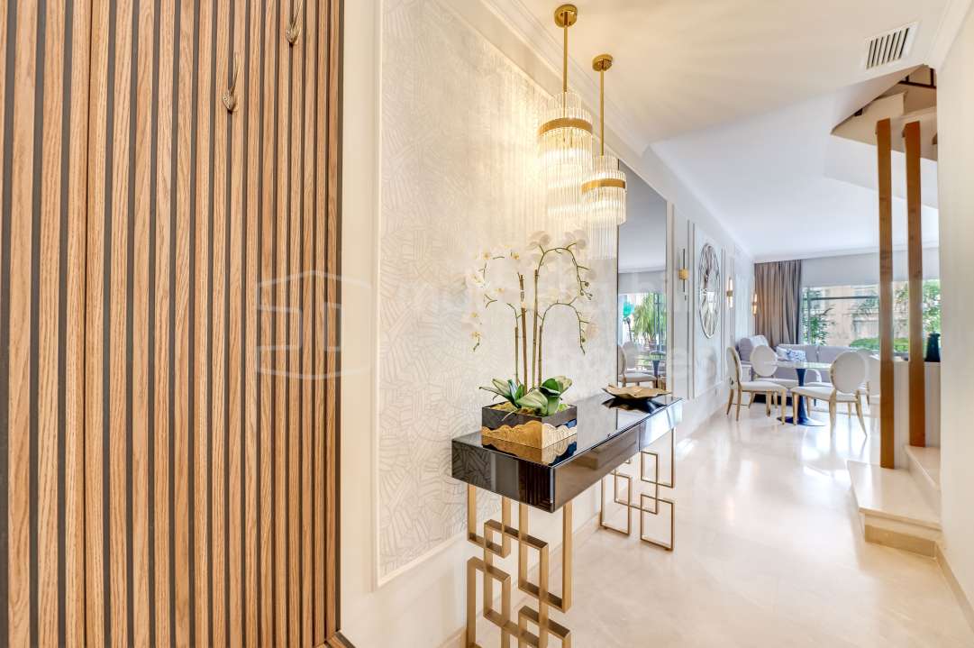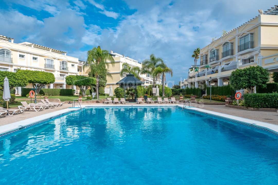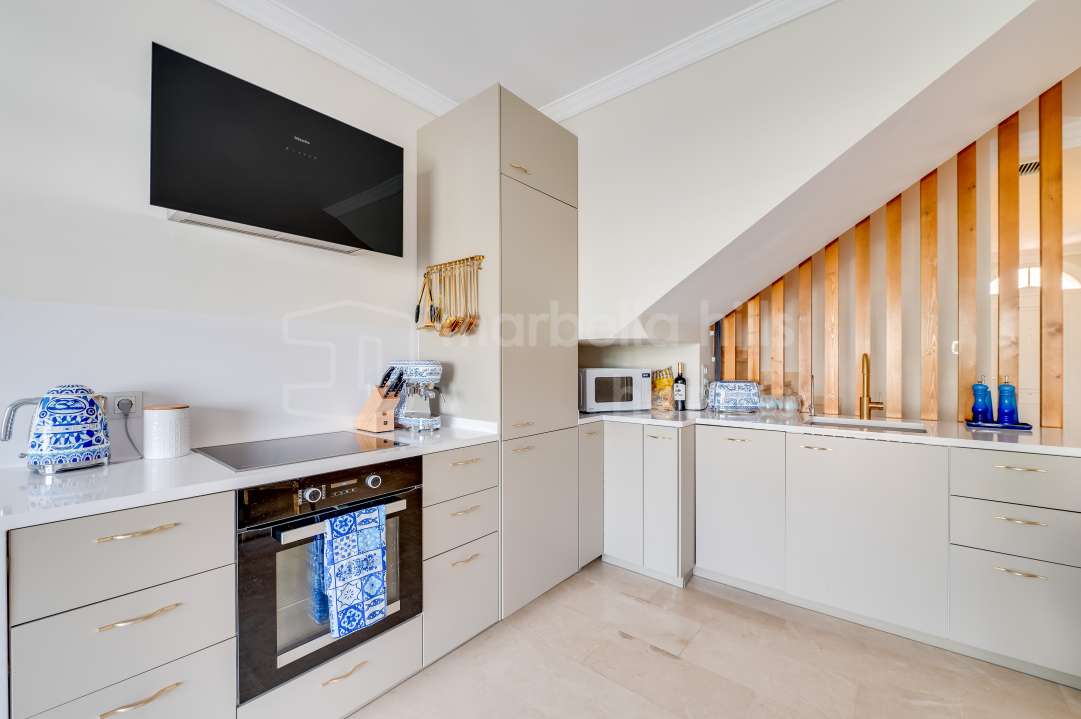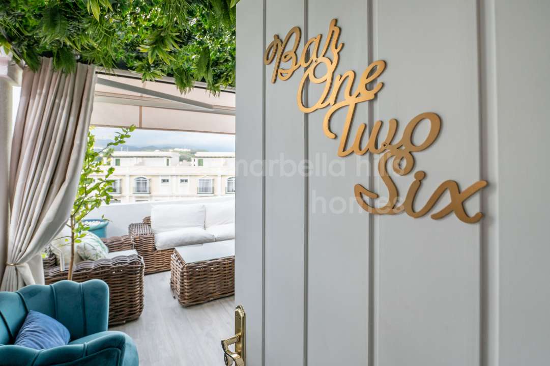 Duplex rénové 3 chambres à Aloha Gardens, Nueva Andalucía, Marbella. 160m² construits, 93m² de terrasses, terrasse privée avec bar, proche de Puerto Banús.