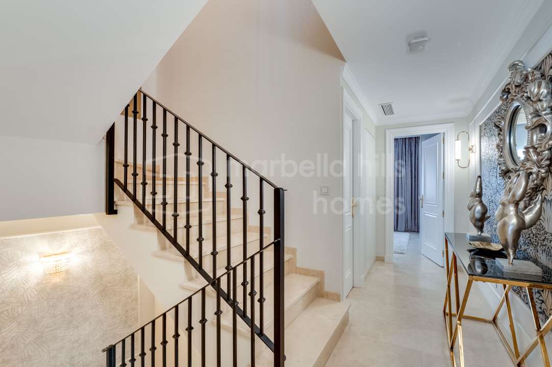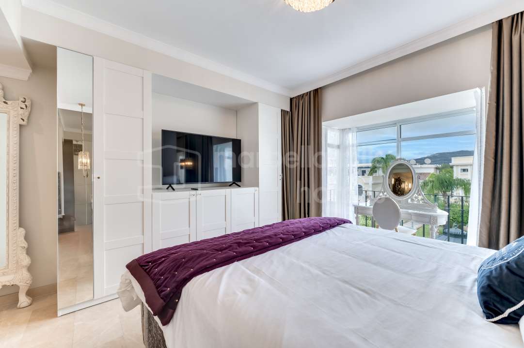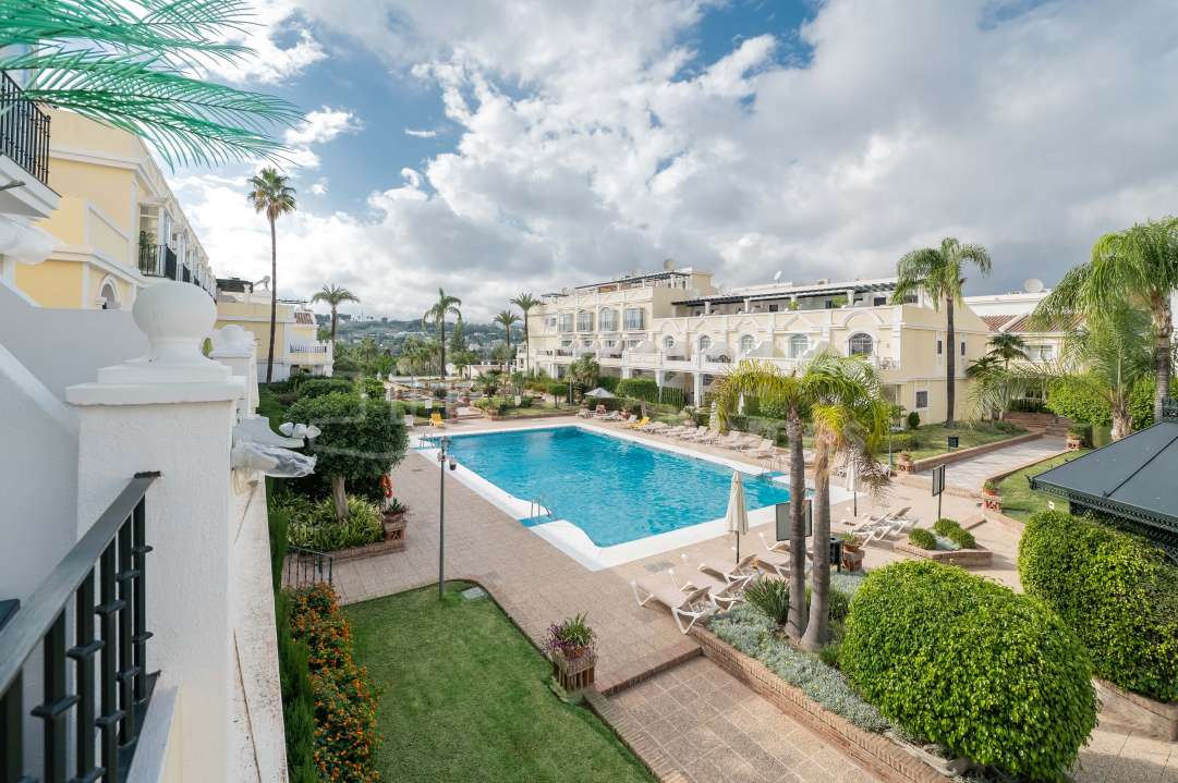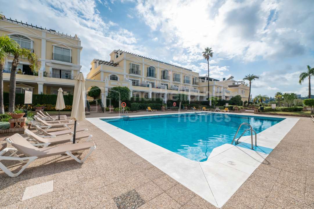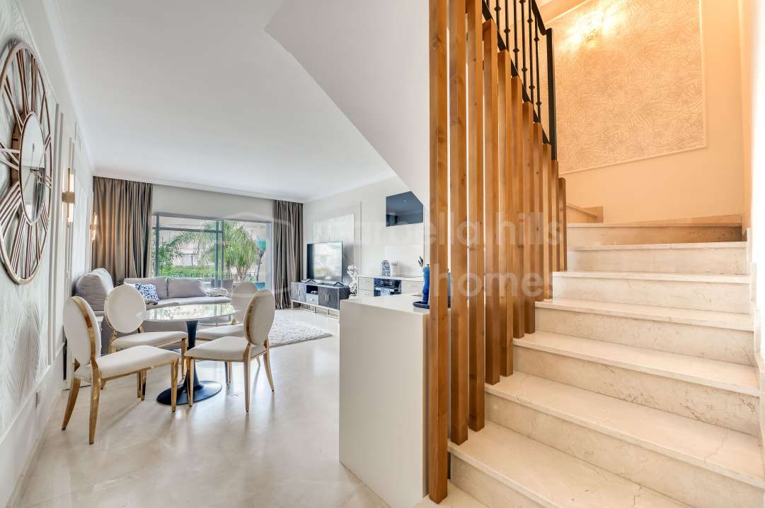 Duplex entièrement rénové à Eagles Village, La Quinta, Benahavís. Design méditerranéen moderne, vues sur le golf, parking privé, licence touristique et proximité du Westin Hotel...