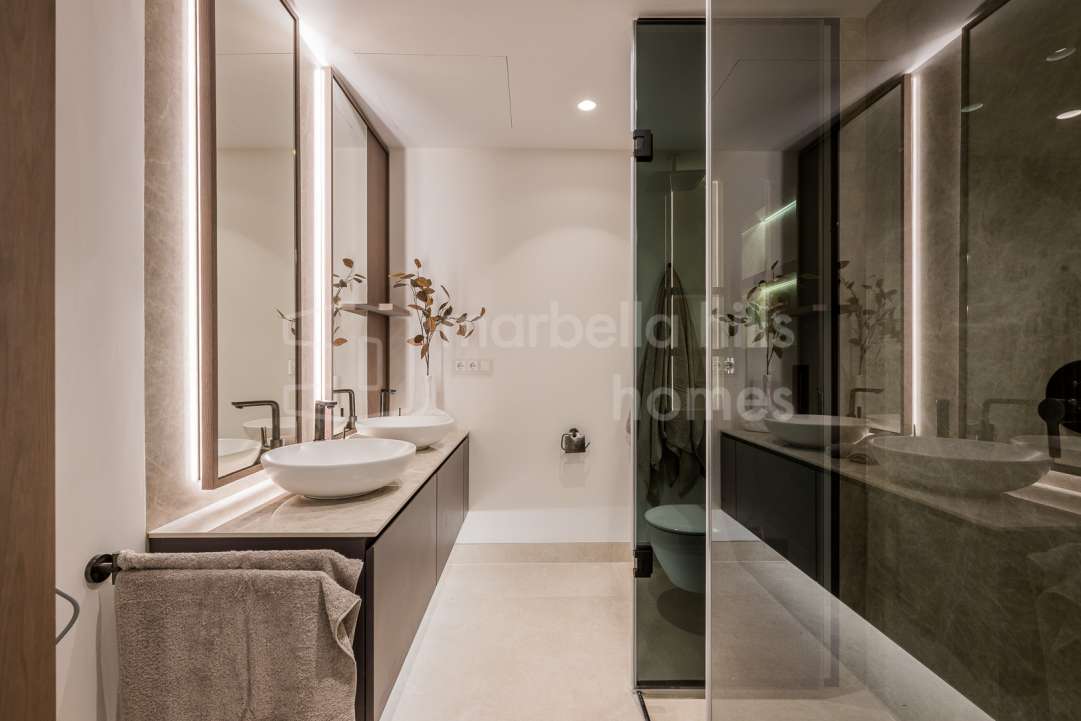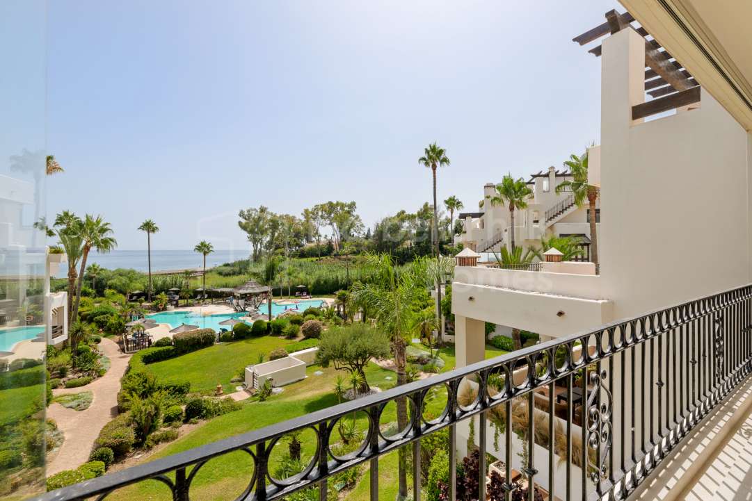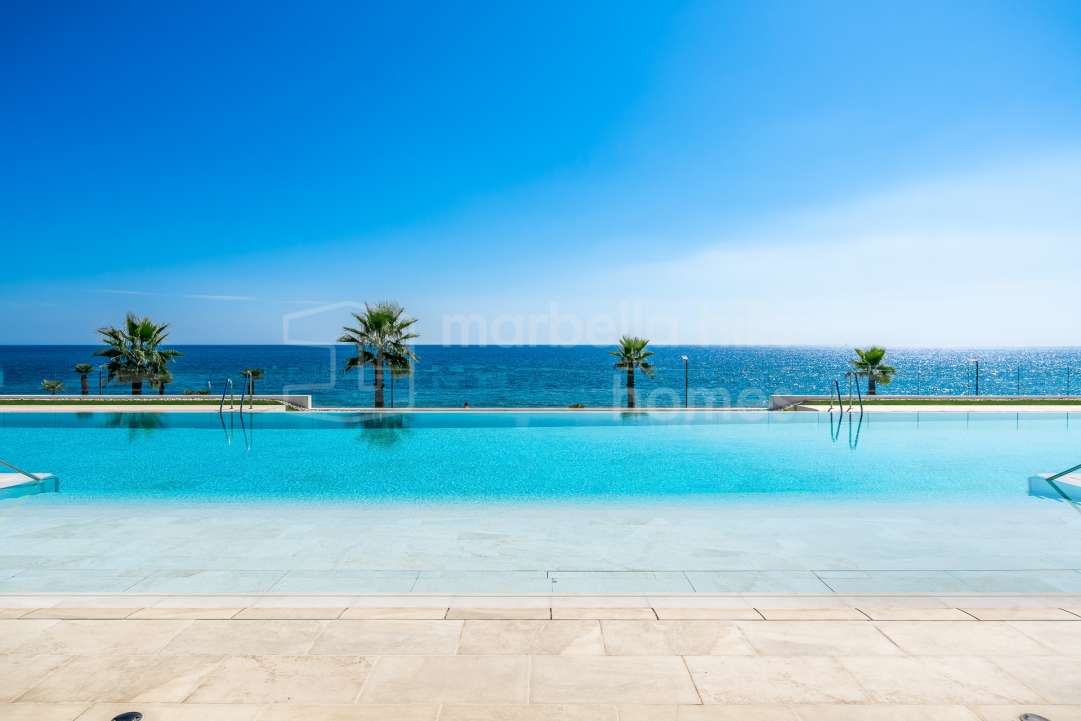 Superbe appartement de quatre chambres et trois salles de bains situé en première ligne de plage dans la prestigieuse résidence The Edge, dans le secteur recherché d’Estepona...