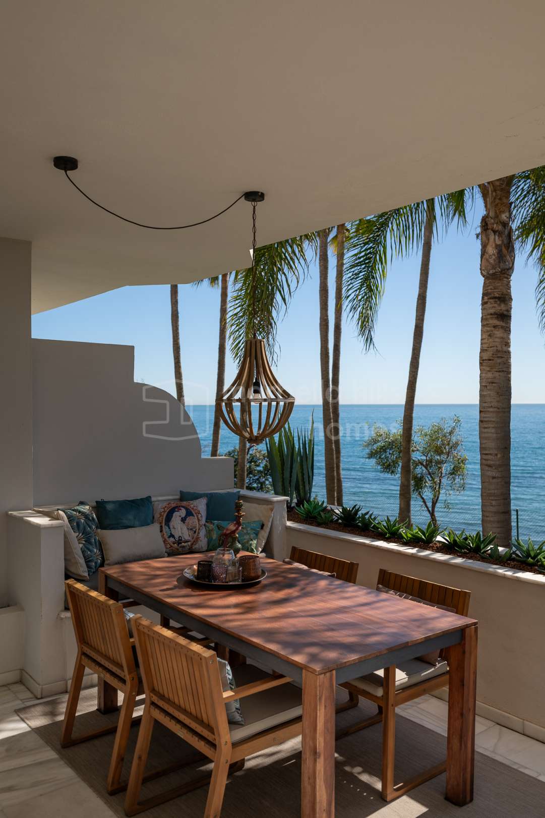 Appartement à vendre à Punta Plata, Estepona en bord de mer avec terrasse et vue mer. 2 chambres dans résidence sécurisée.