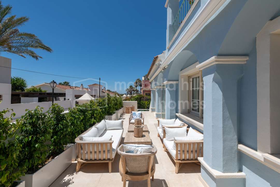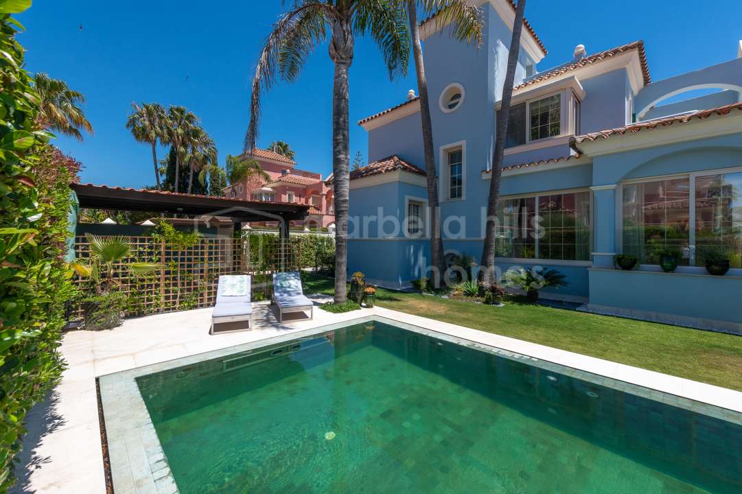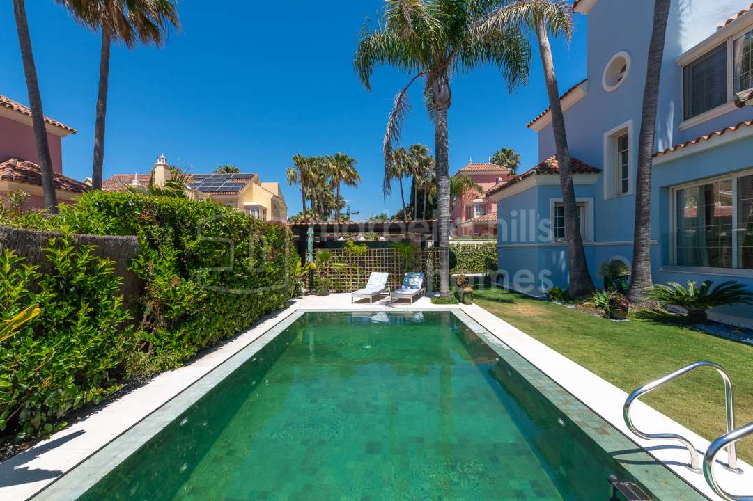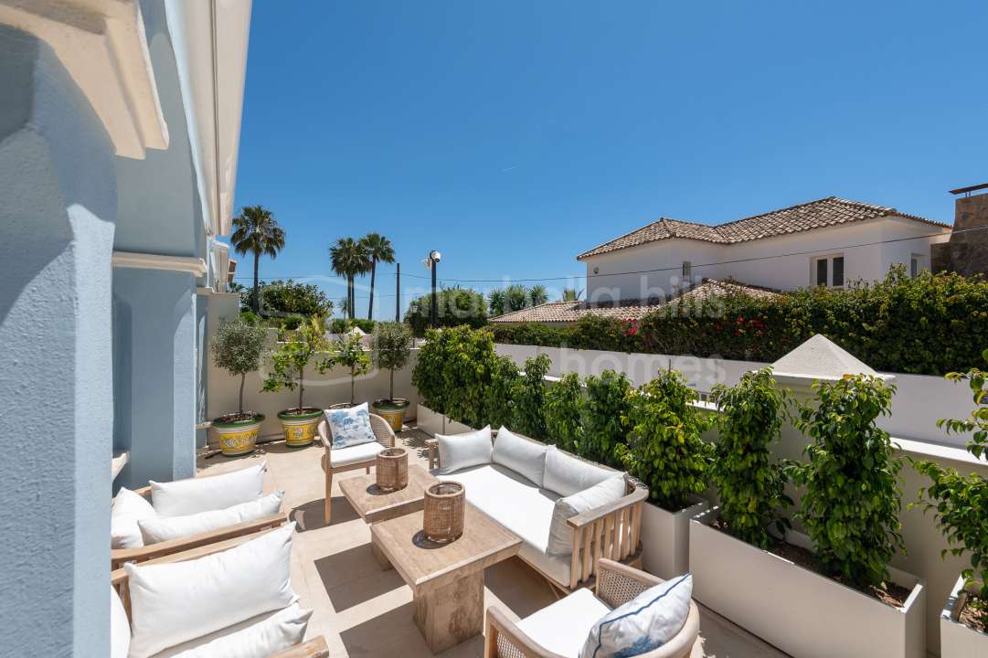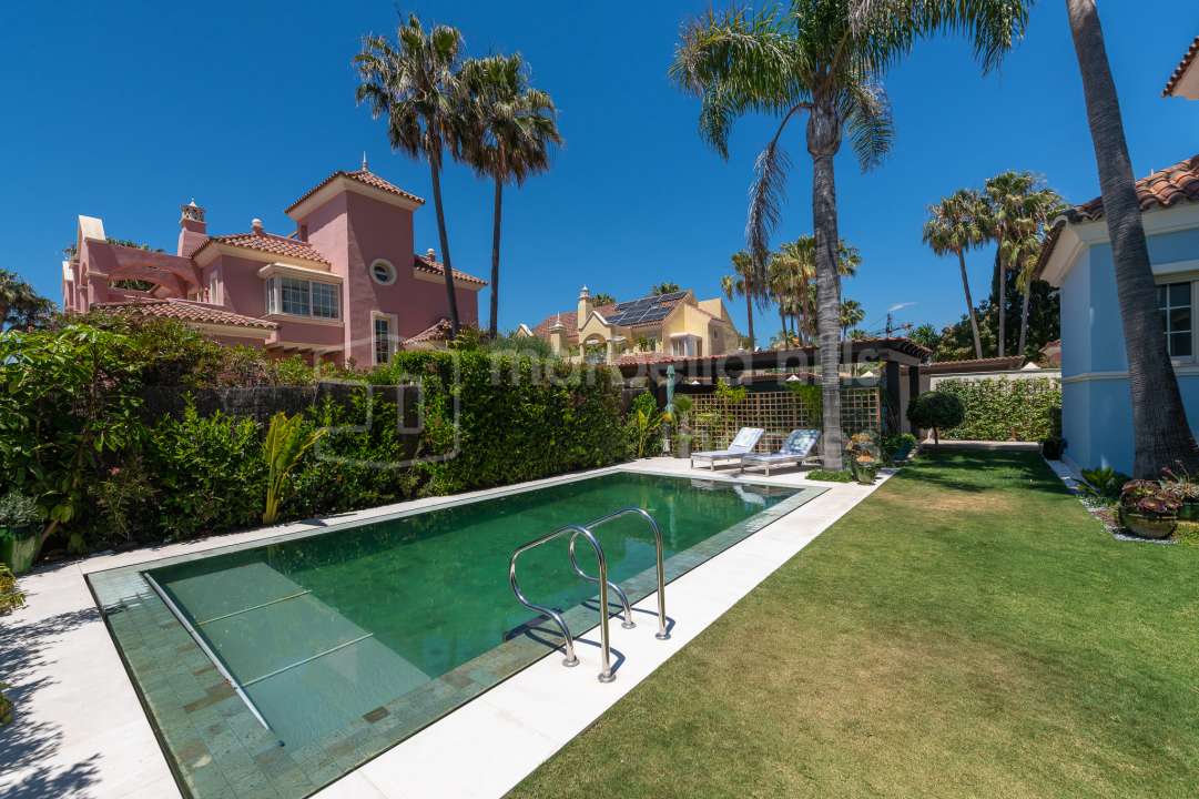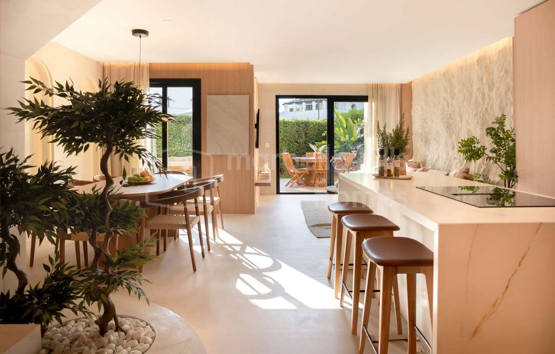 Cette maison mitoyenne entièrement rénovée est située dans le prestigieux quartier d’Azalea Beach, à seulement 200 mètres de la mer et à quelques minutes à pied de Puerto Banús....