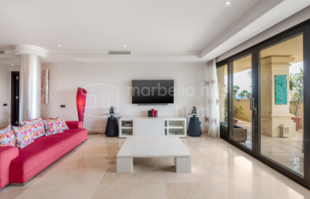 Découvrez cet appartement exclusif en bord de mer à vendre à Puerto Banús, situé dans la résidence privée et sécurisée de Ventura del Mar, à quelques pas du port, des boutiques...