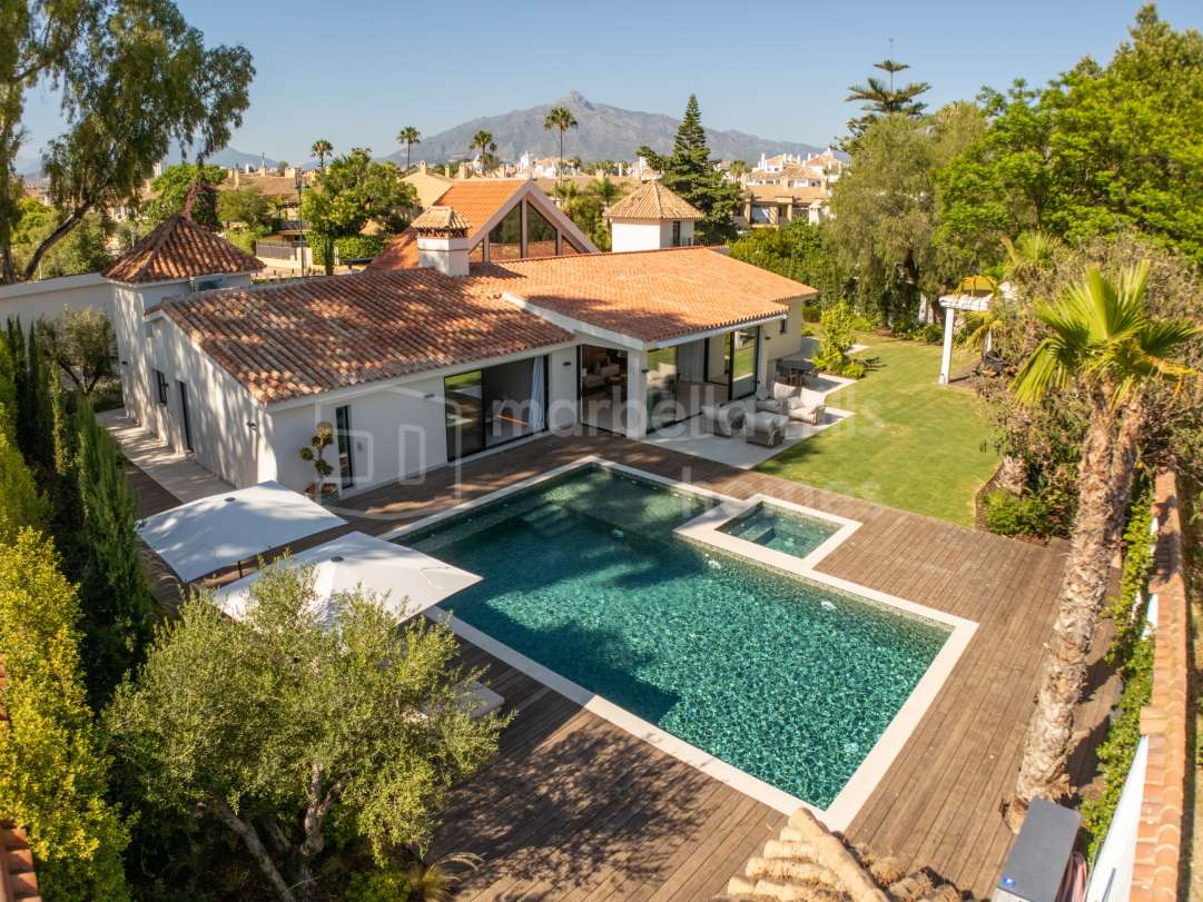 Située à seulement quelques minutes du célèbre Puerto Banús, cette élégante villa de plain-pied offre un style de vie méditerranéen moderne avec des espaces ouverts, une lumière...