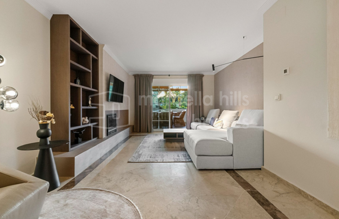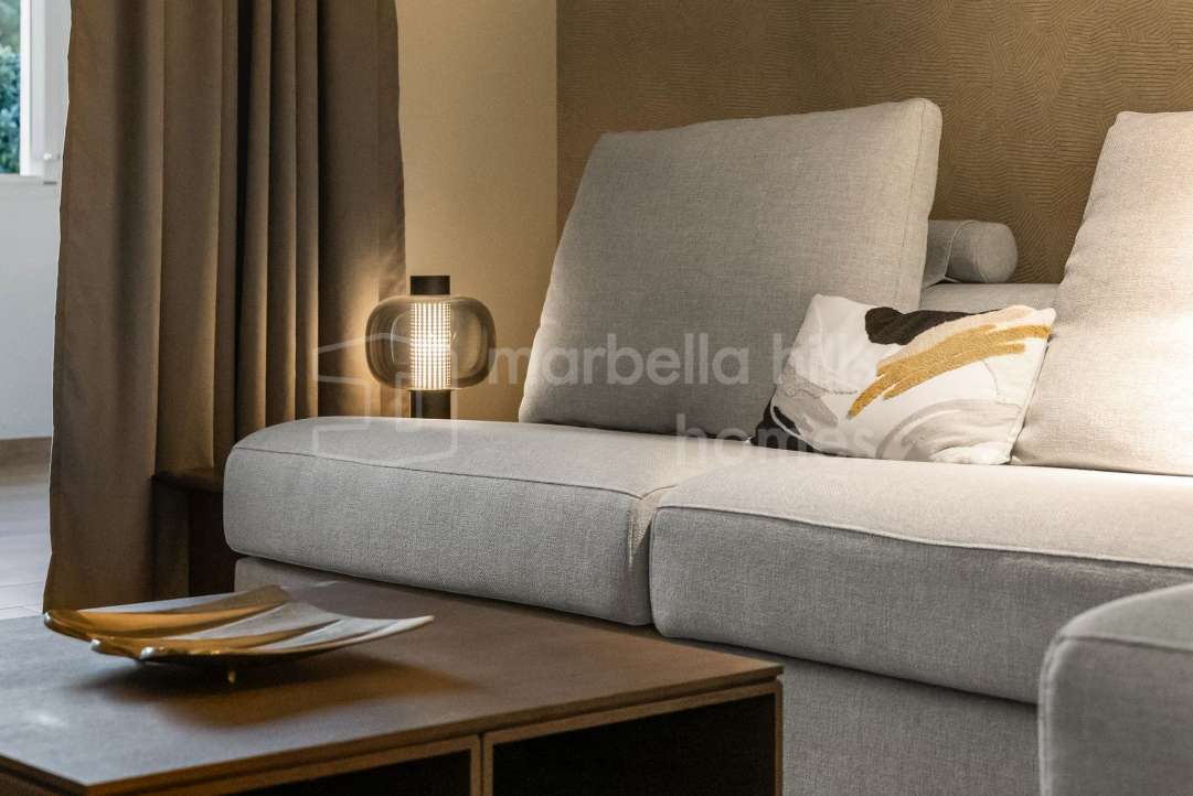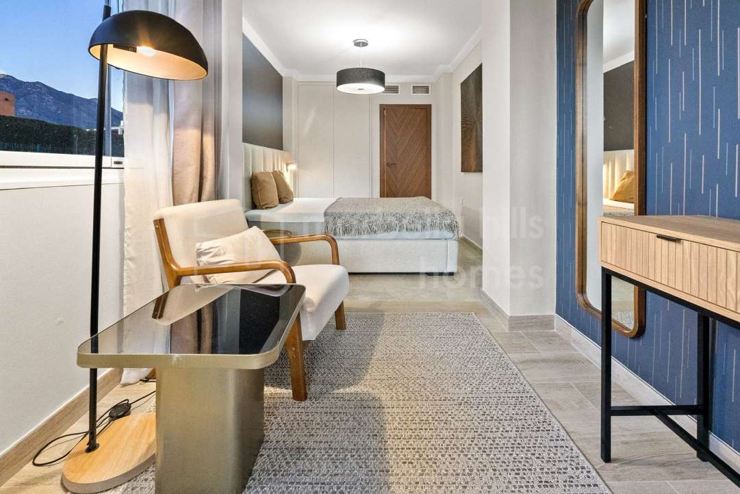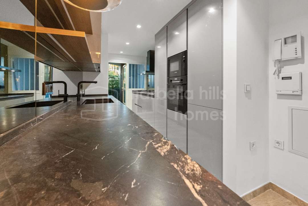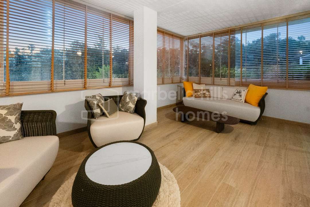 Appartement de 3 chambres rénové en 2025 à Montebello Hills, Sierra Blanca. Terrasse exposée sud, design contemporain, vues paisibles, prestations haut de gamme et sécurité...