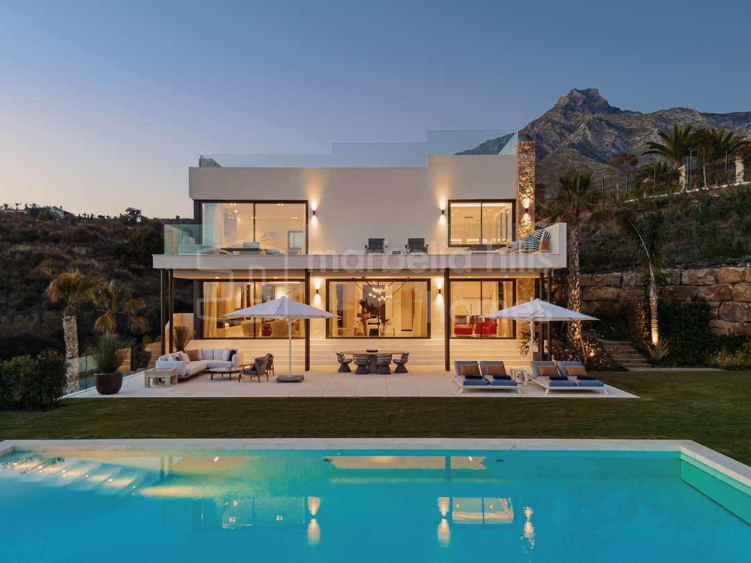 Résidence contemporaine à Sierra Blanca, Marbella – rénovée, avec vues panoramiques, piscine, spa et intimité absolue.