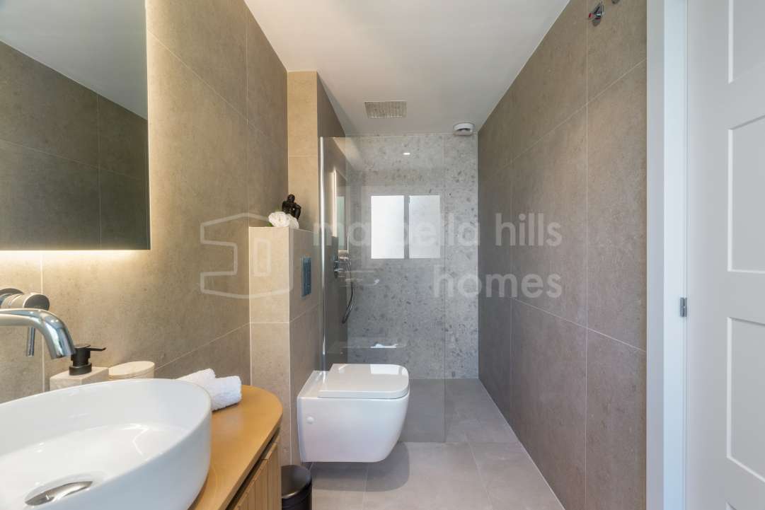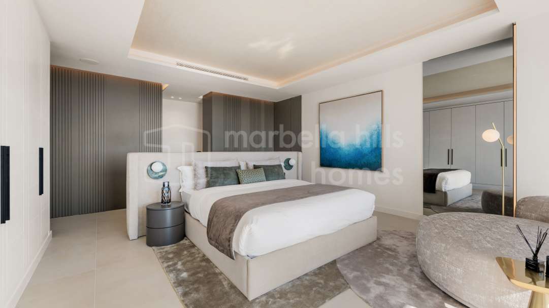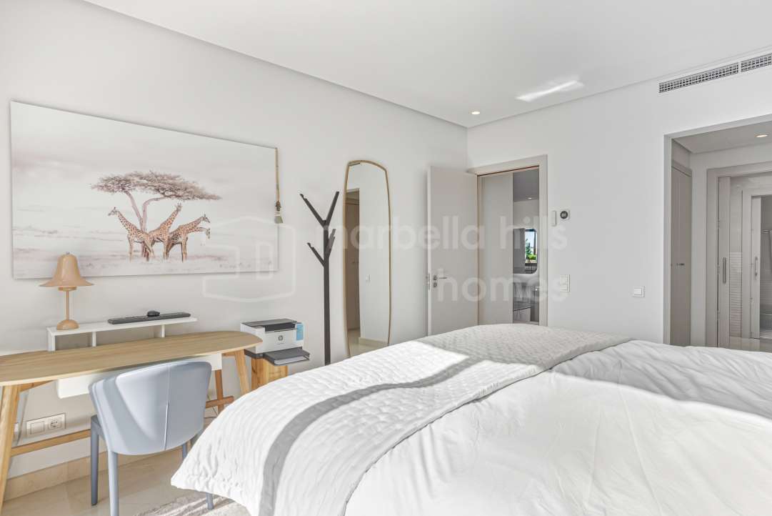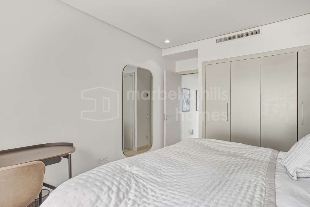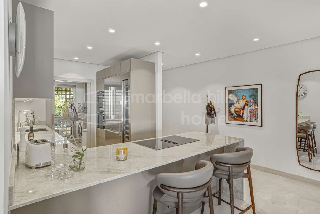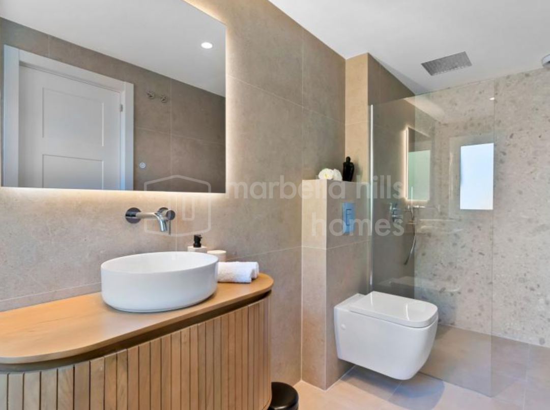 Appartement de 3 chambres rénové en 2025 à Montebello Hills, Sierra Blanca. Terrasse exposée sud, design contemporain, vues paisibles, prestations haut de gamme et sécurité...