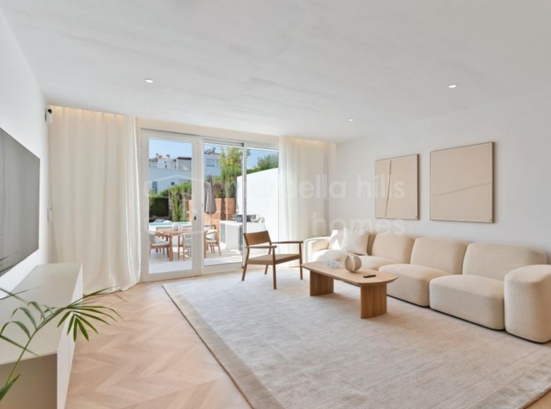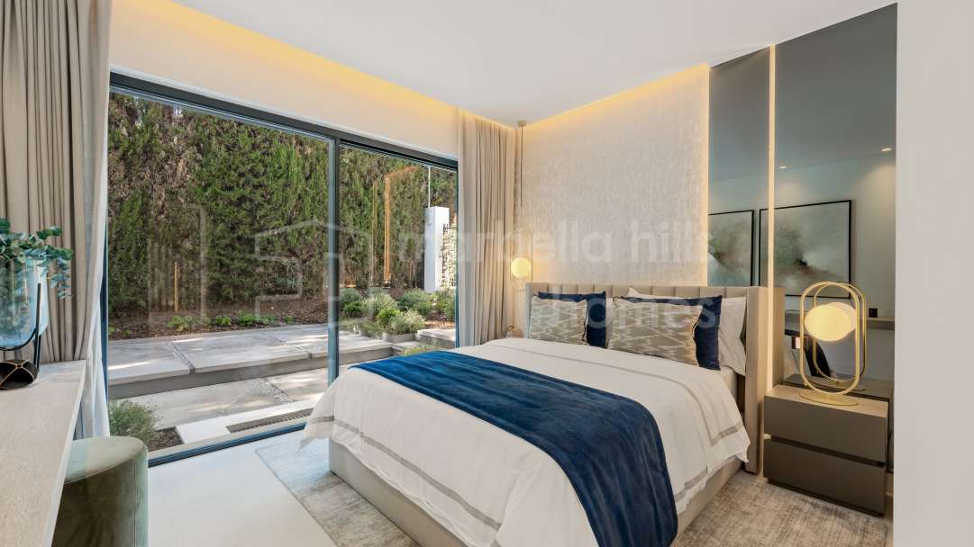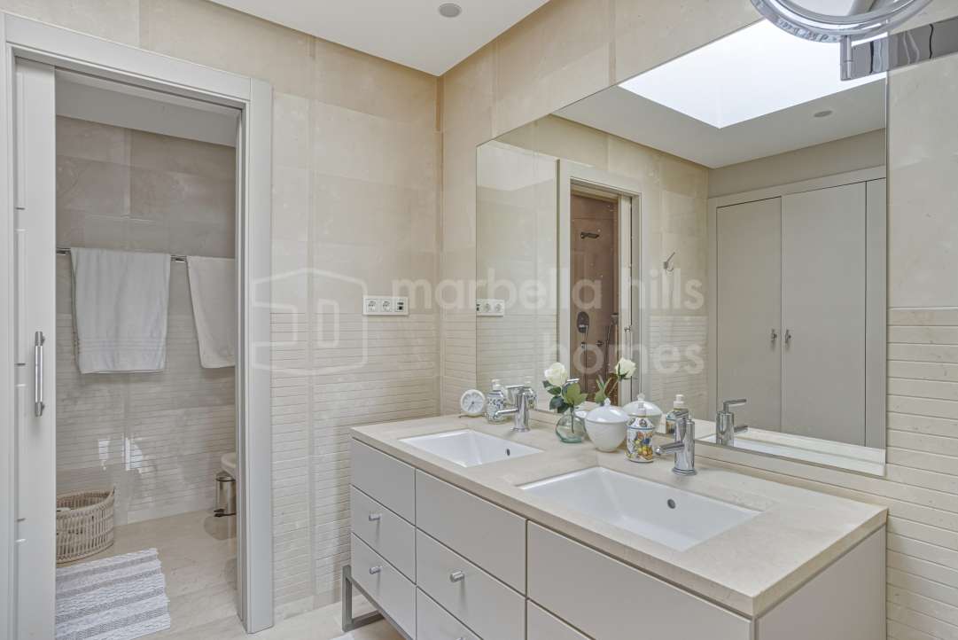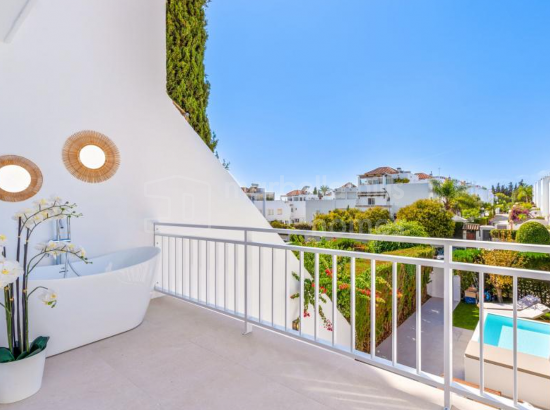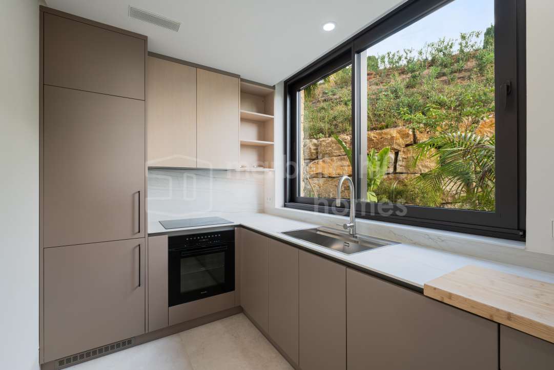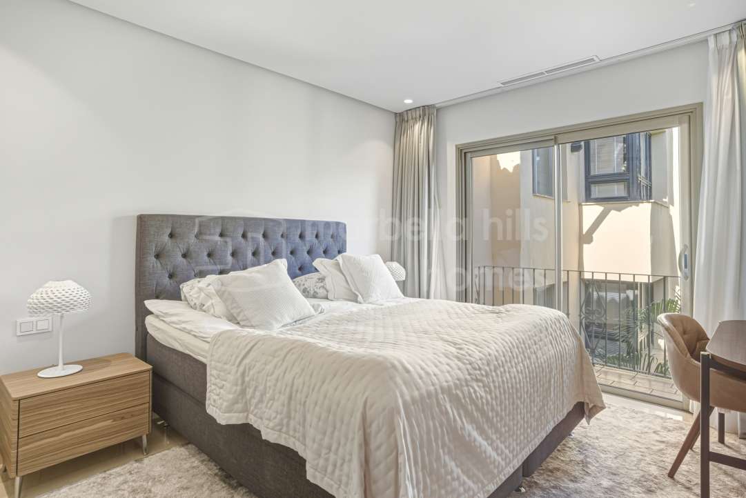 Appartement de 3 chambres rénové en 2025 à Montebello Hills, Sierra Blanca. Terrasse exposée sud, design contemporain, vues paisibles, prestations haut de gamme et sécurité...