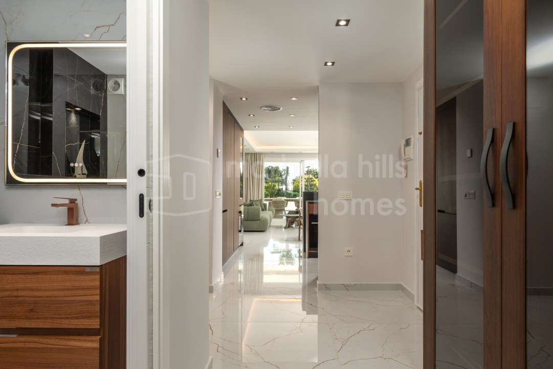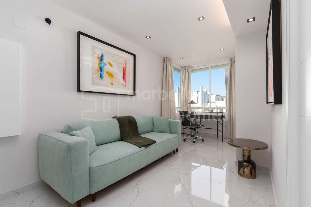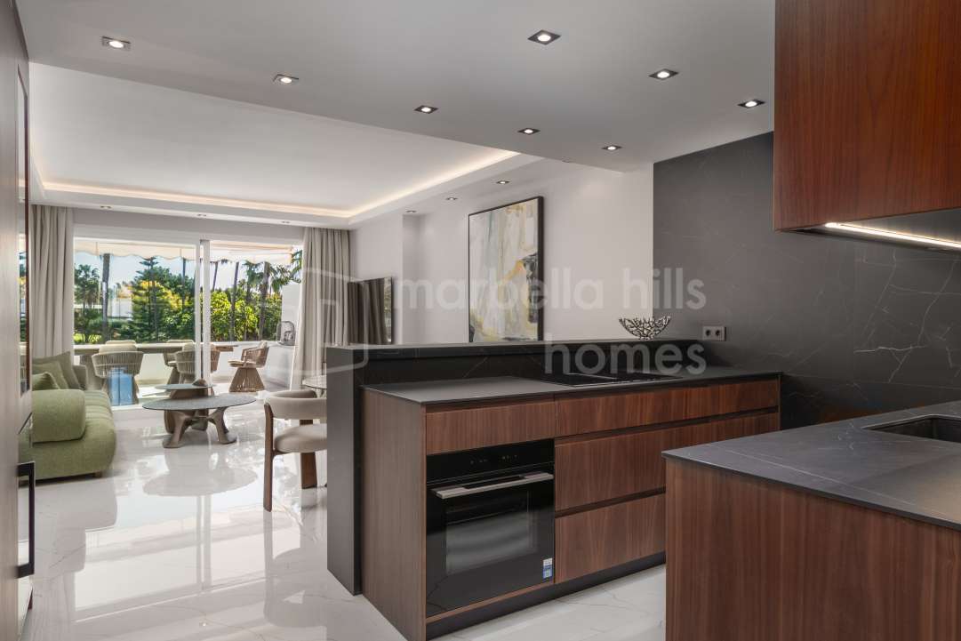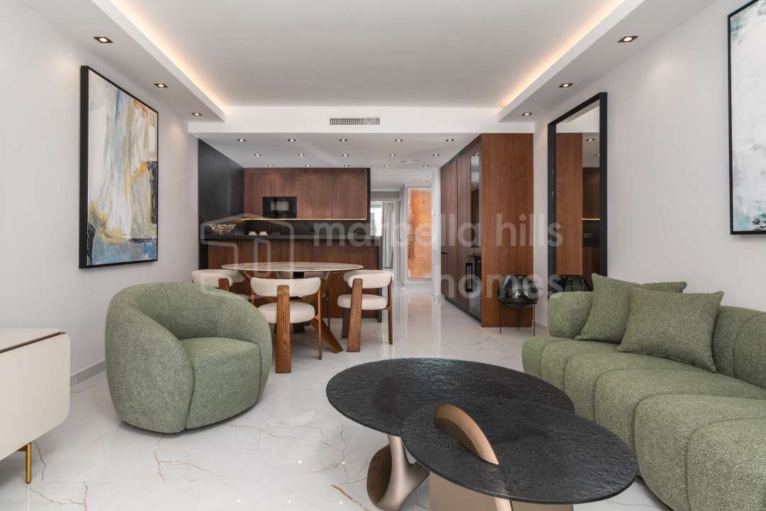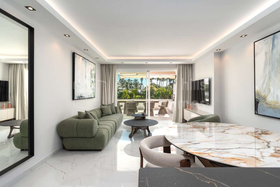 Appartement de luxe entièrement rénové de 3 chambres à Magna Marbella, Nueva Andalucía, avec vue mer panoramique, grande terrasse et emplacement privilégié proche du golf et de...